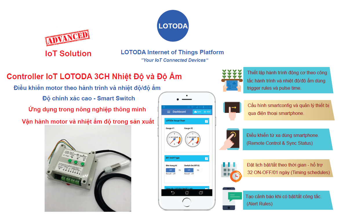 Là công tắc điều khiển từ xa hoạt động kết nối đến nền tảng IoT USENSE platform của Việt Nam.